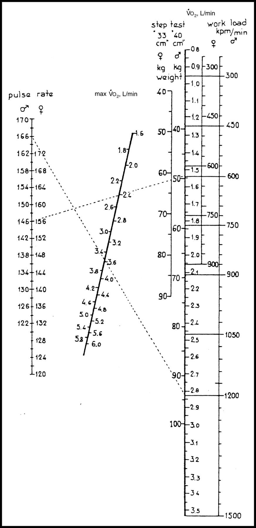 A Nomogram for Calculation of Aerobic Capacity (Physical Fitness) From Pulse Rate During Submaximal Work, P. -O. Åstrand and Irma Ryhming. Journal of Applied Physiology 1954 7:2, 218-221.