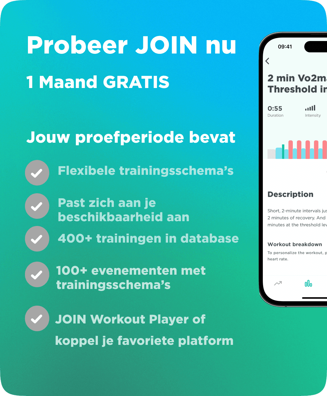 JOIN houdt je geïnspireerd met op maat gemaakte trainingen, continue begeleiding en voorkomt overtraining.