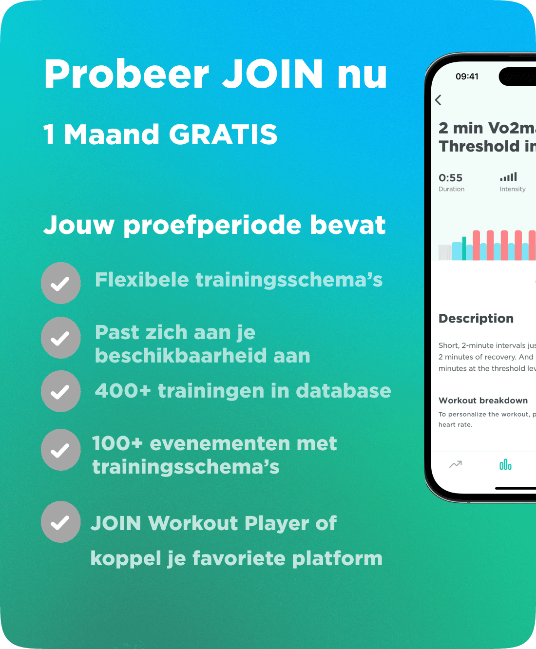 JOIN houdt je geïnspireerd met op maat gemaakte trainingen, continue begeleiding en voorkomt overtraining.