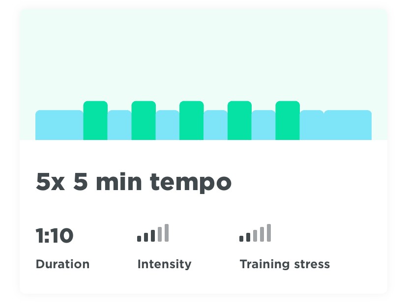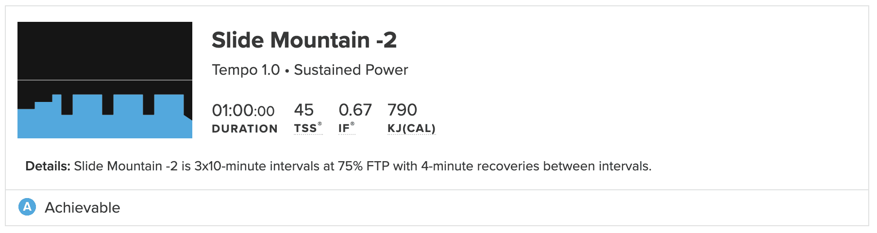 For each workout, TrainerRoad shows the workout level, a 1-10 rating of a workout’s relative difficulty within its training zone. For example, Tempo 1.0.