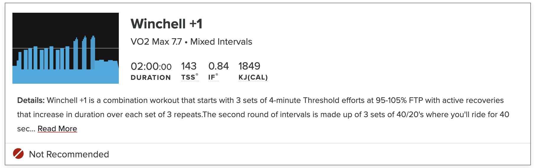 When you browse through the workout list, you can come across some really intense workouts with lots of varying intervals. Like the one displayed below. I haven’t seen them be part of my plan, and that makes sense because I don’t see the point in doing them. They are unrealistic to perform and probably won’t help you improve in the long term.